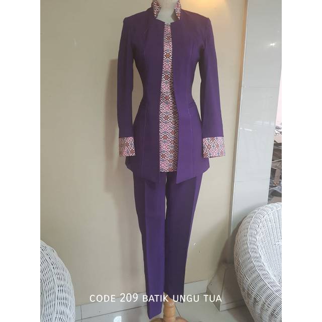 Name: Setelan Blazer Seragam Kerja Wanita Ungu Tua Motif Batik Murah Cantik Pake Inner Bank,perawat,rs