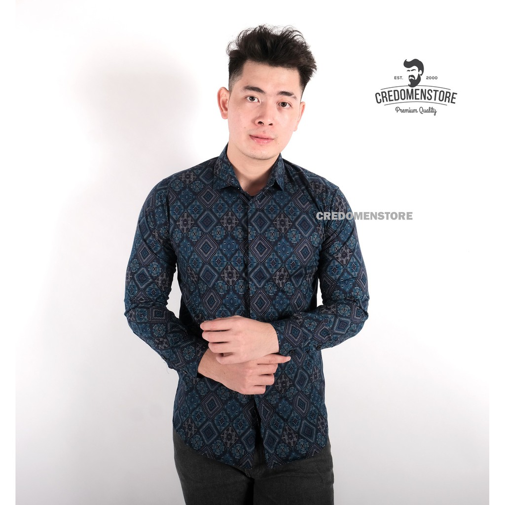 Name: Credomenstore Kemeja Batik Songket Diamond Navy Lengan Panjang / Baju Pria Kasual